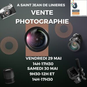 Grande vente d’accessoires de photographie le vendredi 3 et samedi 4 octobre à Saint Jean de Linières aux horaires habituels.